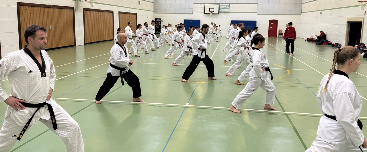 Zum 8. Poomsaetag kamen dieses Jahr 64 Sportler mit unterschiedlichstem Kenntnisstand. Um allen ein optimales Lernen zu ermöglichen, wurden die Sportler dieses Jahr von 4 Referenten betreut. Sabine Müller, Mian Fromm und Hedda Finke, alles Mitglieder des Poomsae Wettkampfkaders, unterrichteten Poomsae nach WT Standard in einzelnen Gruppen je nach Leistungsstand. Martin Wroblinski schloss den Tag mit praktischen Anwendungen für die Selbstverteidigung ab.
