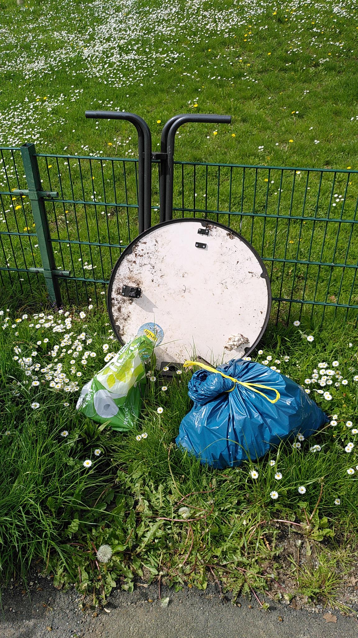 Das größte Fundstück unserer Cleanup-Gruppe war in diesem Jahr ein defekter Stehtisch, den Teilnehmerin Lisann mit ihrer Tochter entdeckt und aus dem Gebüsch gefischt hat. Ansonsten kam ein halber Sack voll Müll sowie eine Tüte mit Glasflaschen hinzu.