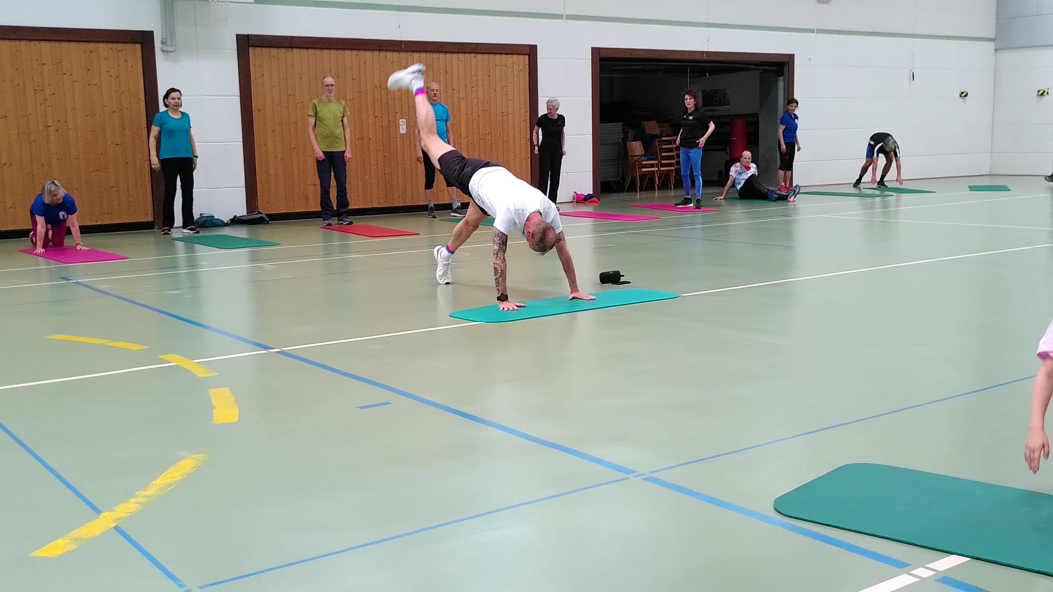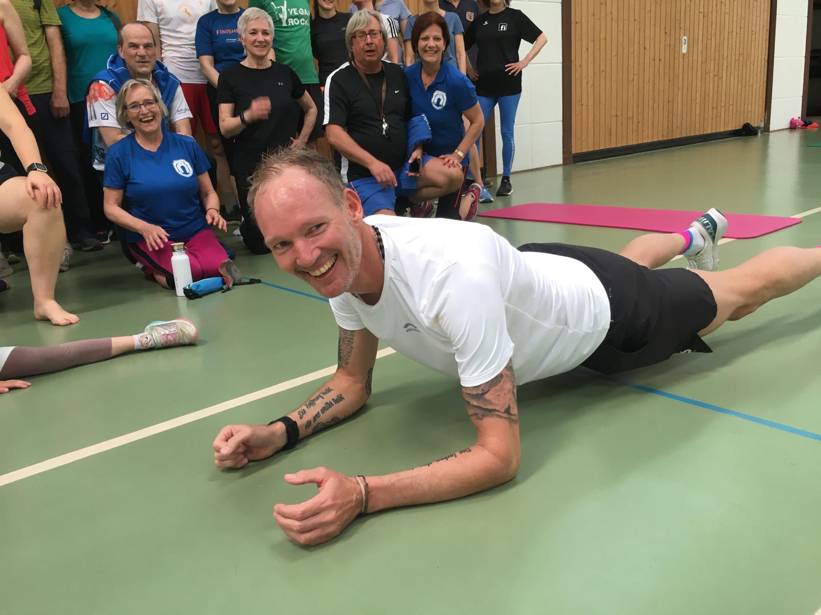 Mit seinen Übungen für unter anderem Ausdauer, Kraft, Koordination, Balance und Beweglichkeit, sowie seiner lockeren Art hat er uns auf die anstehenden Läufe vorbereitet und gleich noch für besonders gute Laune gesorgt.